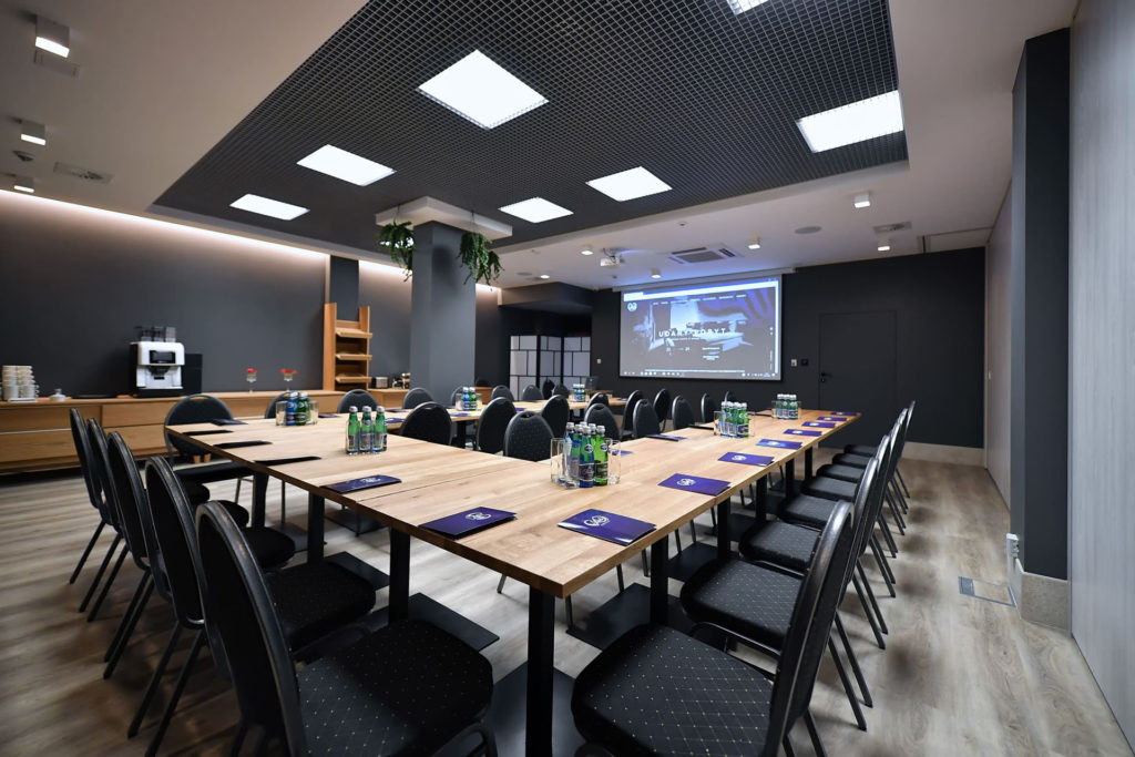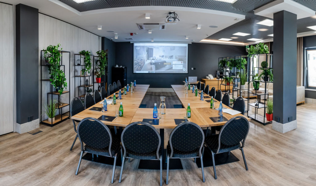 Dostosowujemy układ sali szkoleniowej do formatu wydarzenia – od klasycznego ustawienia konferencyjnego po mniej formalną atmosferę przy wspólnym stole.